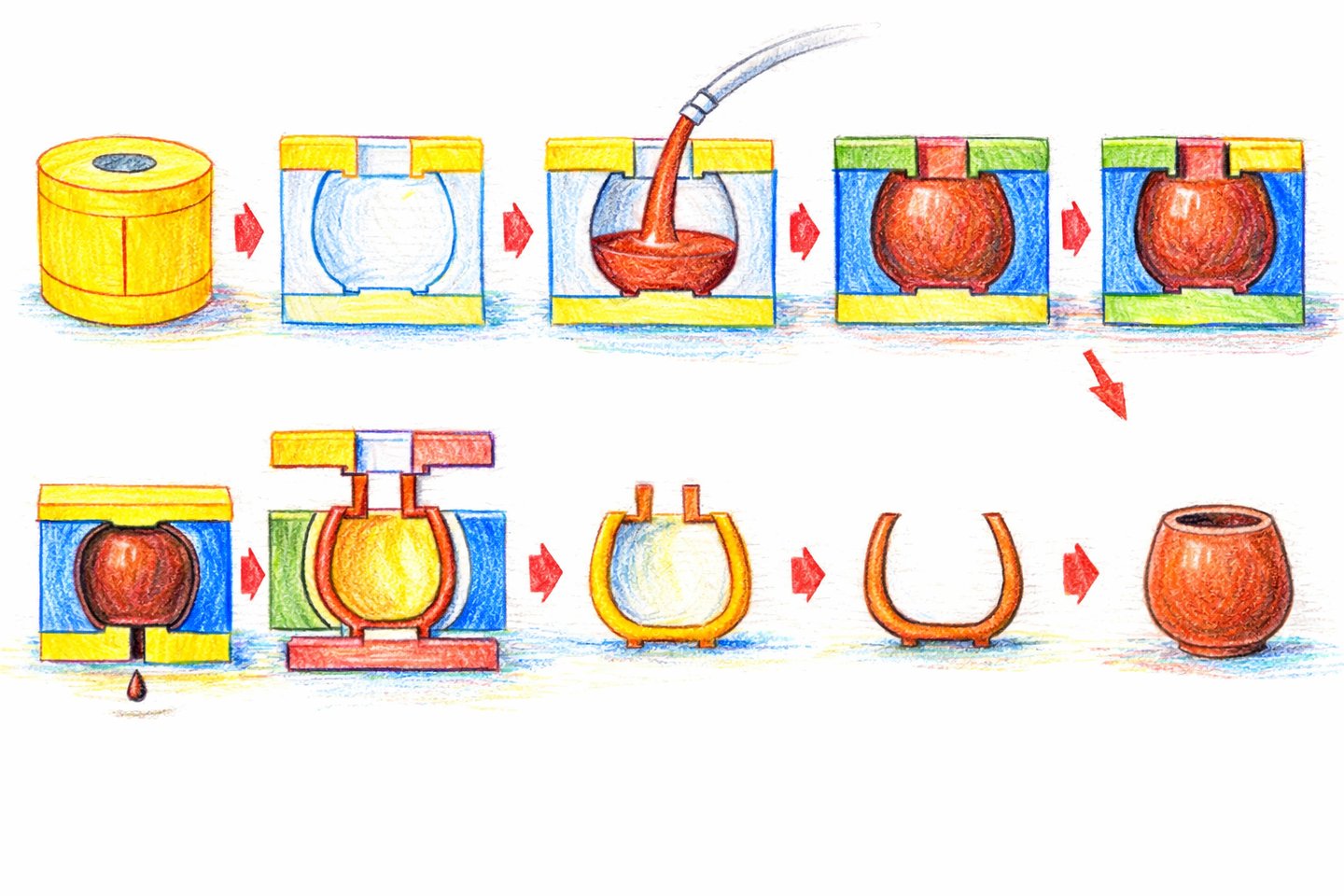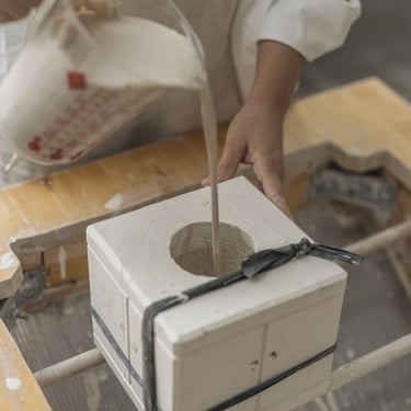 Coulage de la barbotine (argile liquide) dans le moule.