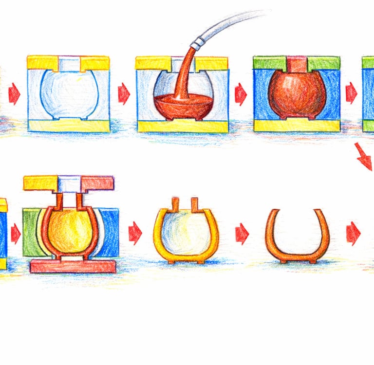 Assemblage du moule en plusieurs parties, maintenues avec des élastiques.