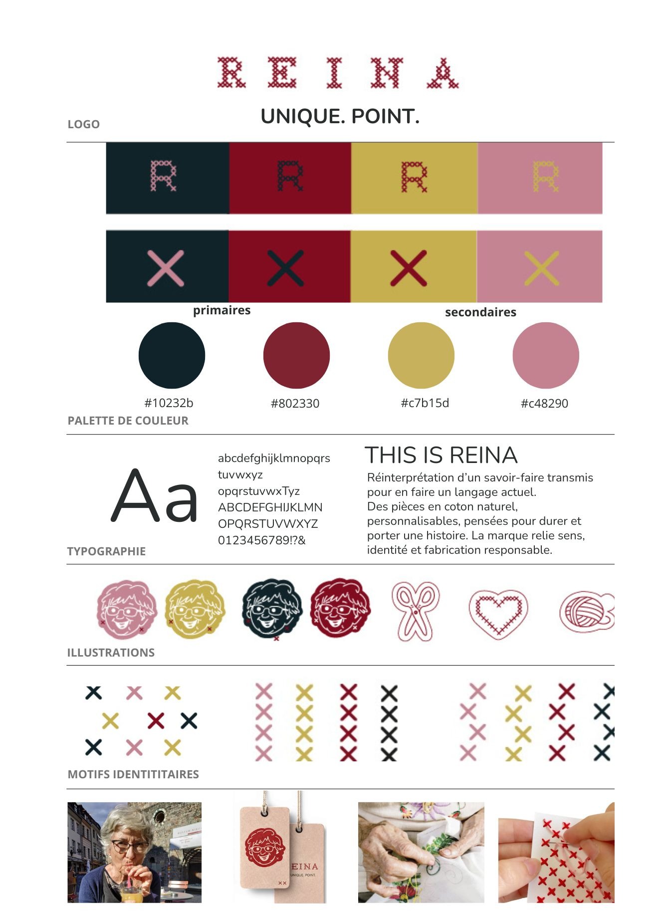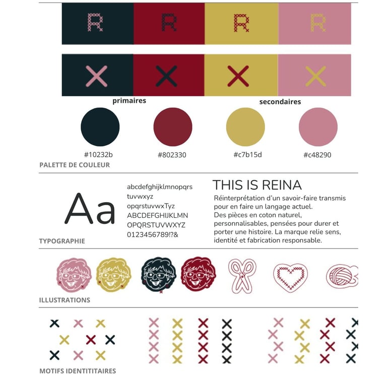 Le projet s’inspire du fait-main et de la transmission, et plus particulièrement de ma grand mère en s’appuyant sur le point de croix, les motifs répétitifs. Des couleurs douces et chaleureuses renforcent cette ambiance, pour créer un univers visuel qui relie tradition et modernité .