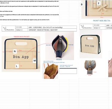 Cette intention se traduit ensuite dans la conception technique, où formes, dimensions et broderies sont soigneusement définies, avant d’être transmises au fabricant pour la réalisation du prototype.
